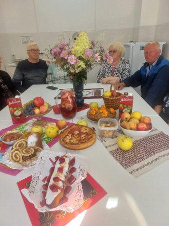 Главным украшением столов были свежие яблоки, а также пироги с яблочной начинкой, варенье из яблок, яблочная пастила и сушеные яблоки с корицей. Женщины рассказывали, какие блюда можно приготовить из яблок. Особенно всех заинтересовал рецепт яблочный пастилы, которым поделилась Быкова Людмила Сергеевна.