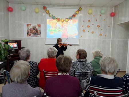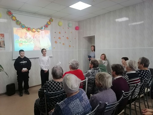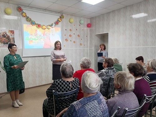 Собравшихся поздравила директор учреждения Н.Б. Лакеева, пожелала здоровья и долголетия, любви и внимания родных и близких. Председатель клуба «Южские посиделки» А.Г. Митрофанова прочитала трогательные авторские стихотворения про «золотой» возраст, ученица Южской детской школы искусств А. Мосина исполнила музыкальные композиции на скрипке, ребята посещающие занятия семейного клуба «Радость» отделения социального сопровождения семей с детьми подарили музыкальное поздравление и открытки, изготовленные своими руками. Библиотекари М. Львова и Н. Матягина подготовили увлекательную викторину и конкурсы.