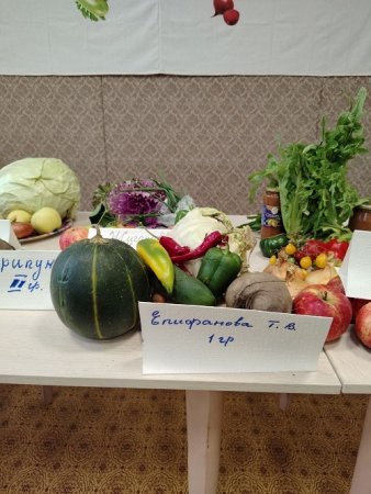 Данная выставка подвела определённый итог проделанной огромной работы. В этот день на выставке были представлены красавцы-перцы, помидоры, огурцы, цветная капуста, кабачки и дыни, яблоки, виноград и многое другое.