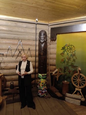 В музее представлены резные деревянные скульптуры Сварога, Перуна, Макаши, Ярилы, Велеса, Мара и других древнерусских божеств. Авторами скульптур являются резчик по дереву А.Драченов и его дочь – художник. Все были в восторге от экскурсии в древнюю мифологию.
